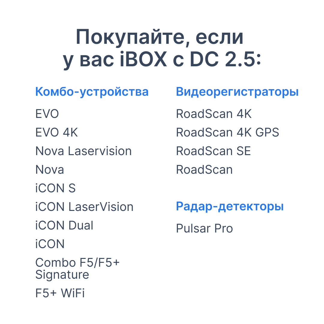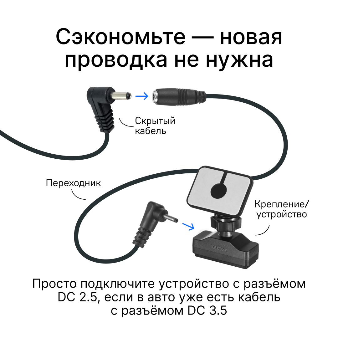 устройство предназначено для передачи электрического тока номинальным напряжением 12 В от разъёма DC 3,5 в питаемое устройство (видеорегистратор или комбо- устройство) c разъёмом питания DC2,5