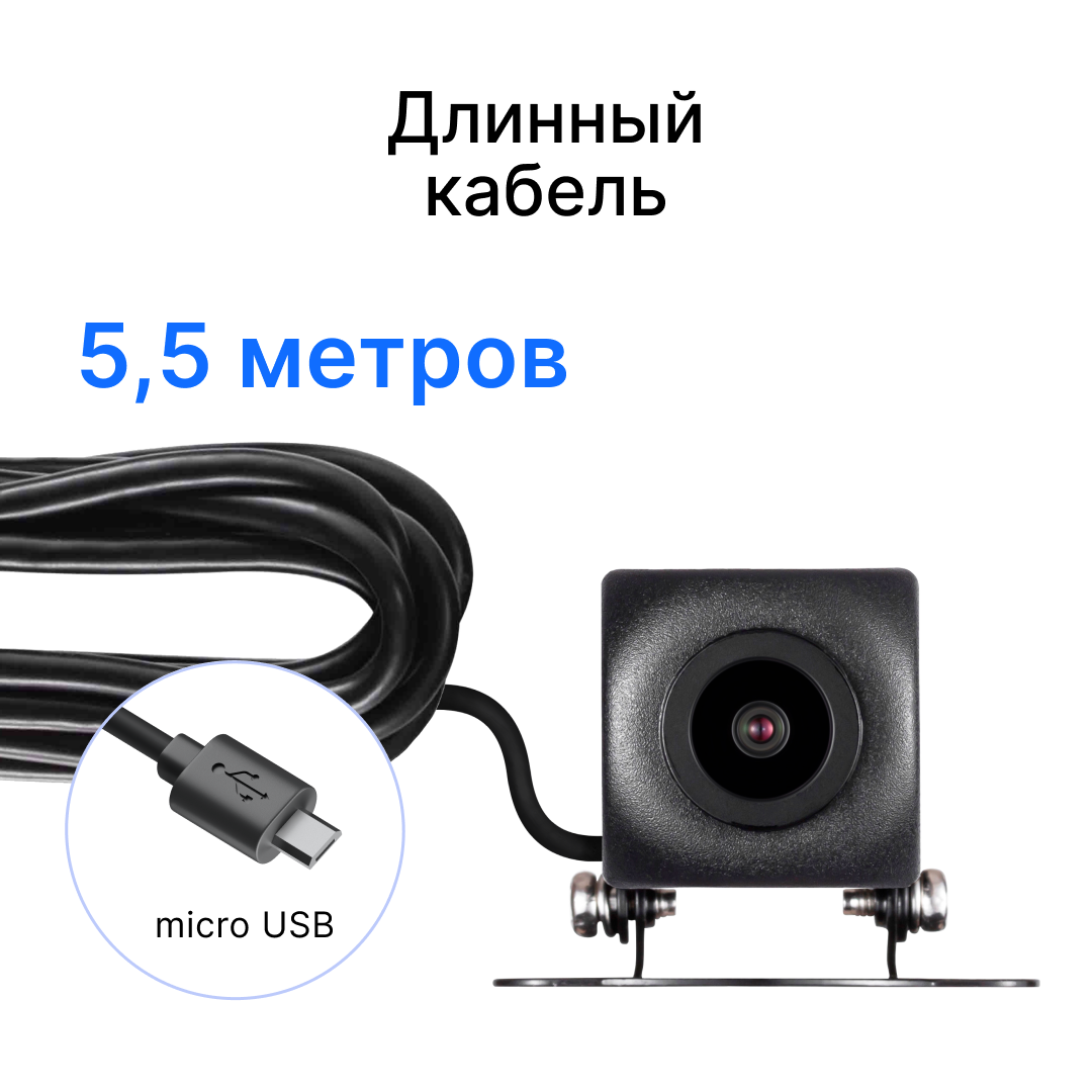 Достаточно широкие углы обзора. Длинный кабель позволяет без проблем разместить камеру в длинном хэтчбеке, подключилась к регу быстро, все настройки максимально просты. Рекомендую.
