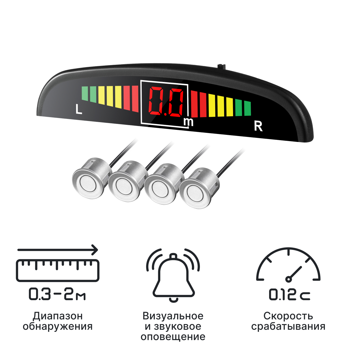Доставка шустрее некуда, комплект полный, парктроник работает отлично, все как в описании товара. Удобная шкала, не отвлекает от руля. Расстояние показывает довольно точное. Парковаться во дворе стало спокойнее, время на это теперь трачу гораздо меньше.