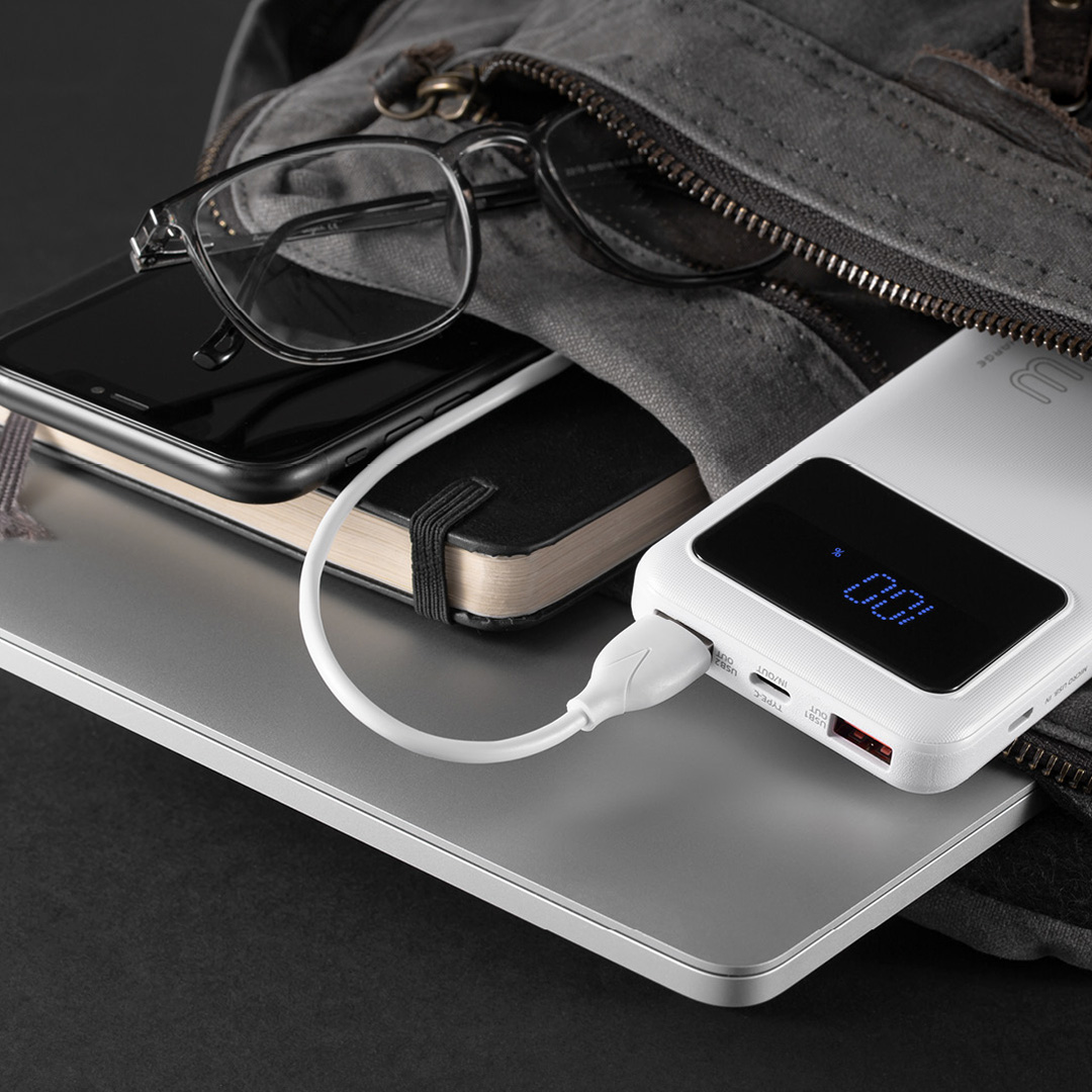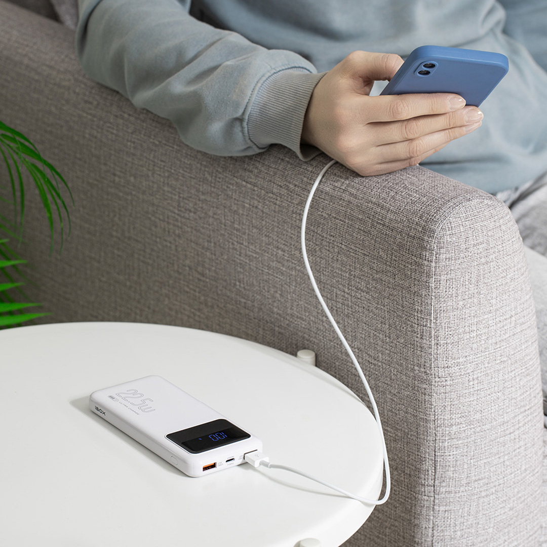 Хороший достойный внешний аккумулятор, есть индикатор, фонарик мощный, хороший уровень заряда для двух устройств, покупкой доволен. Рекомендую.