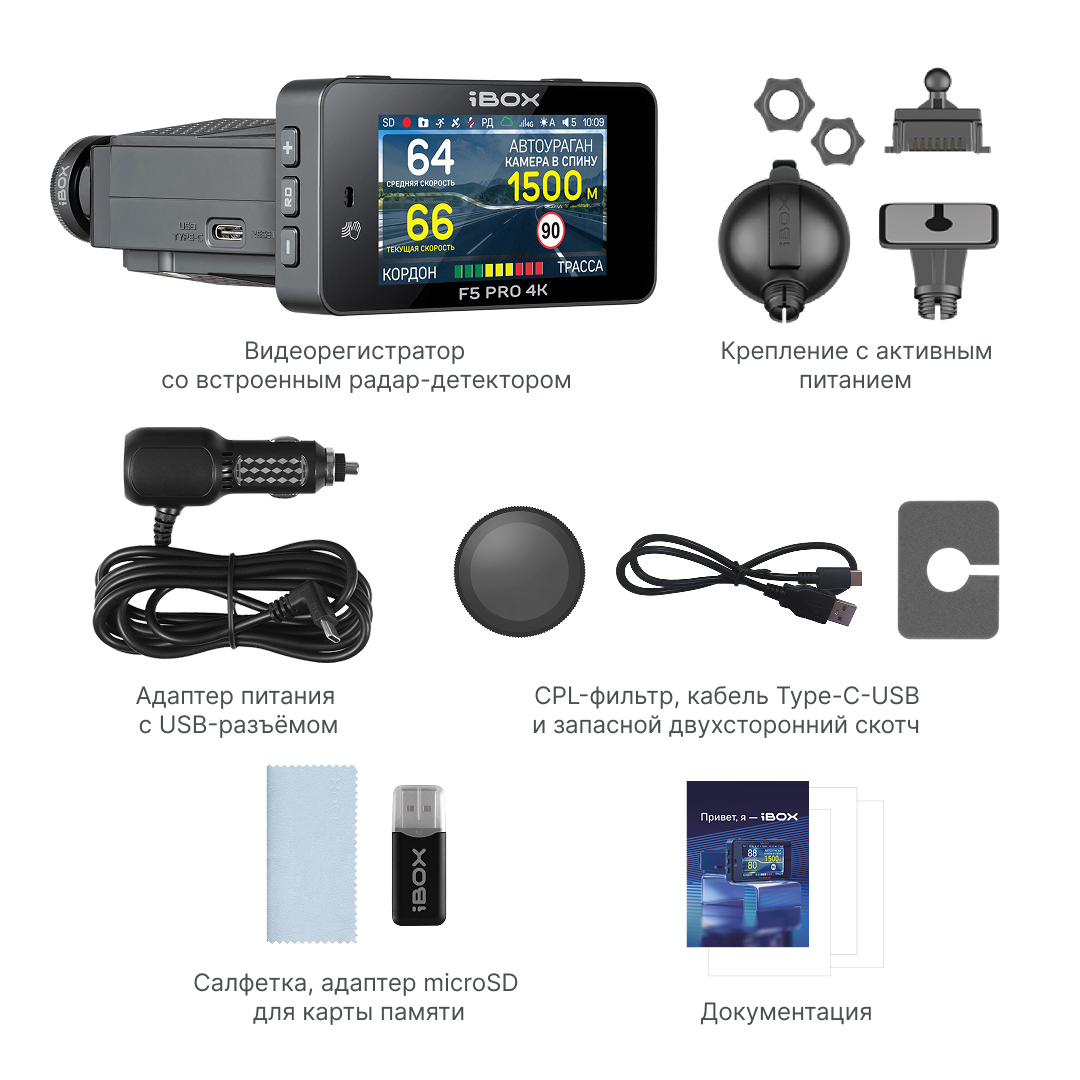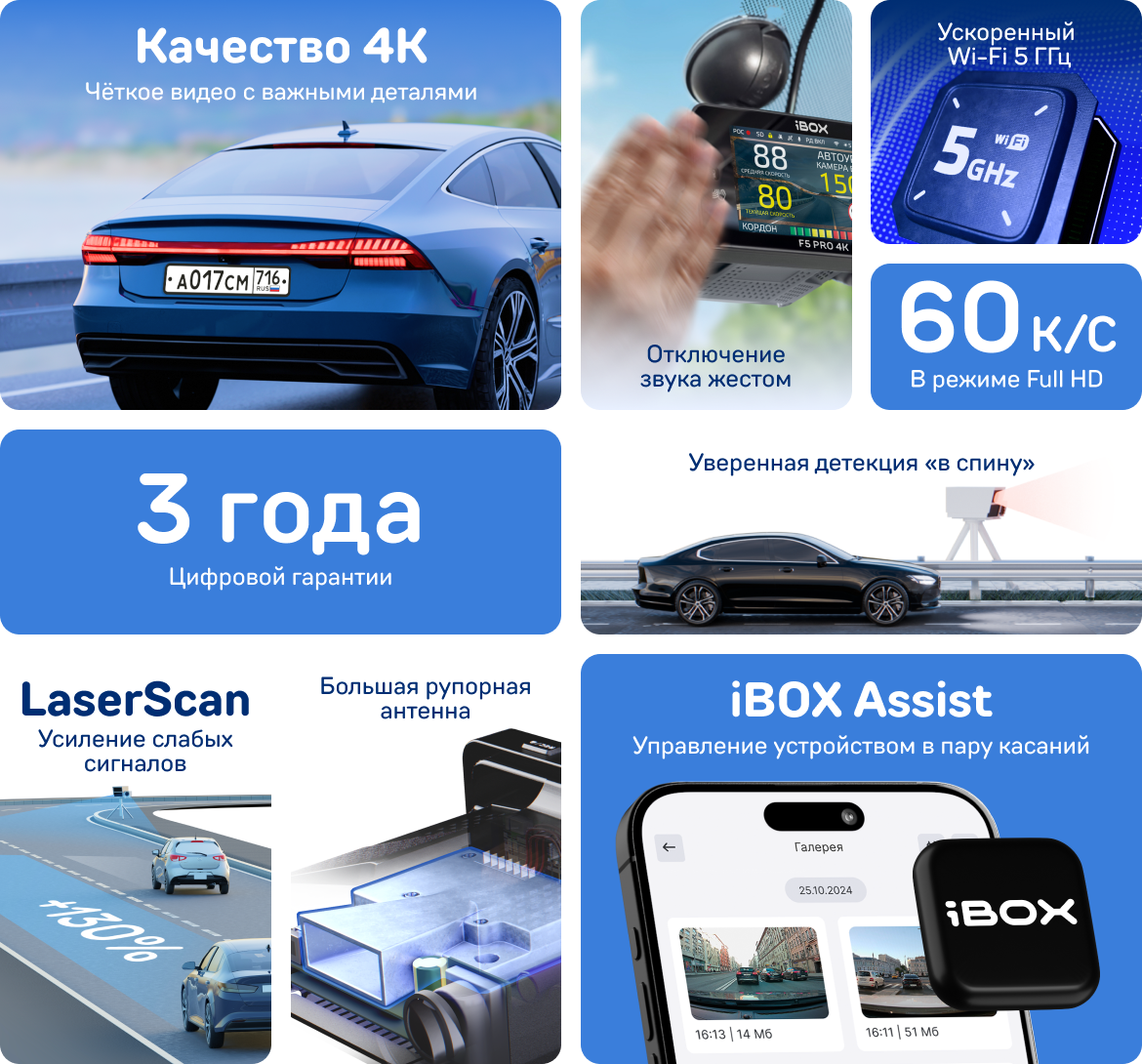 iBOX F5 PRO 4K — автомобильный видеорегистратор с сигнатурным радар-детектором, дальнобойной рупорной антенной и Wi-Fi.