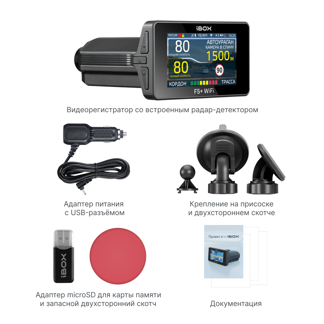 iBOX F5+ WiFi — автомобильный видеорегистратор с сигнатурным радар-детектором, подключением к смартфону и оптимальным набором функций.