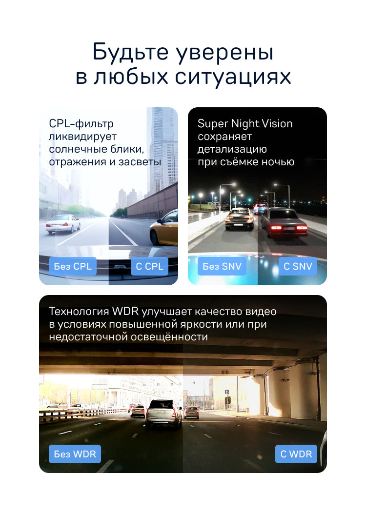 Модуль Wi-Fi позволяет в дистанционном режиме просматривать и управлять записанными видеофайлами. Благодаря встроенному Wi-Fi можно в любой момент загрузить конкретный видеофайл на мобильное устройство или планшет.
