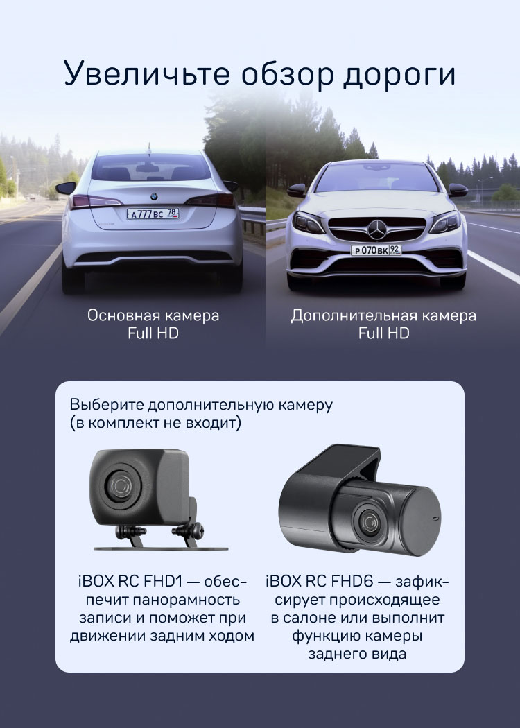 Устройство может поддерживать подключение выносных камер, оснащенных кабелями. С их помощью происходит видеозапись дорожной ситуации не только по направлению движения авто, но и в заднем секторе обзора, внутри салона.
