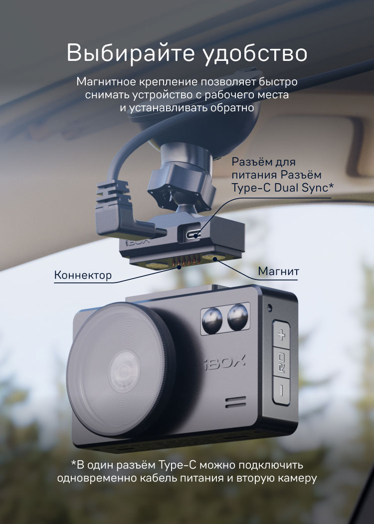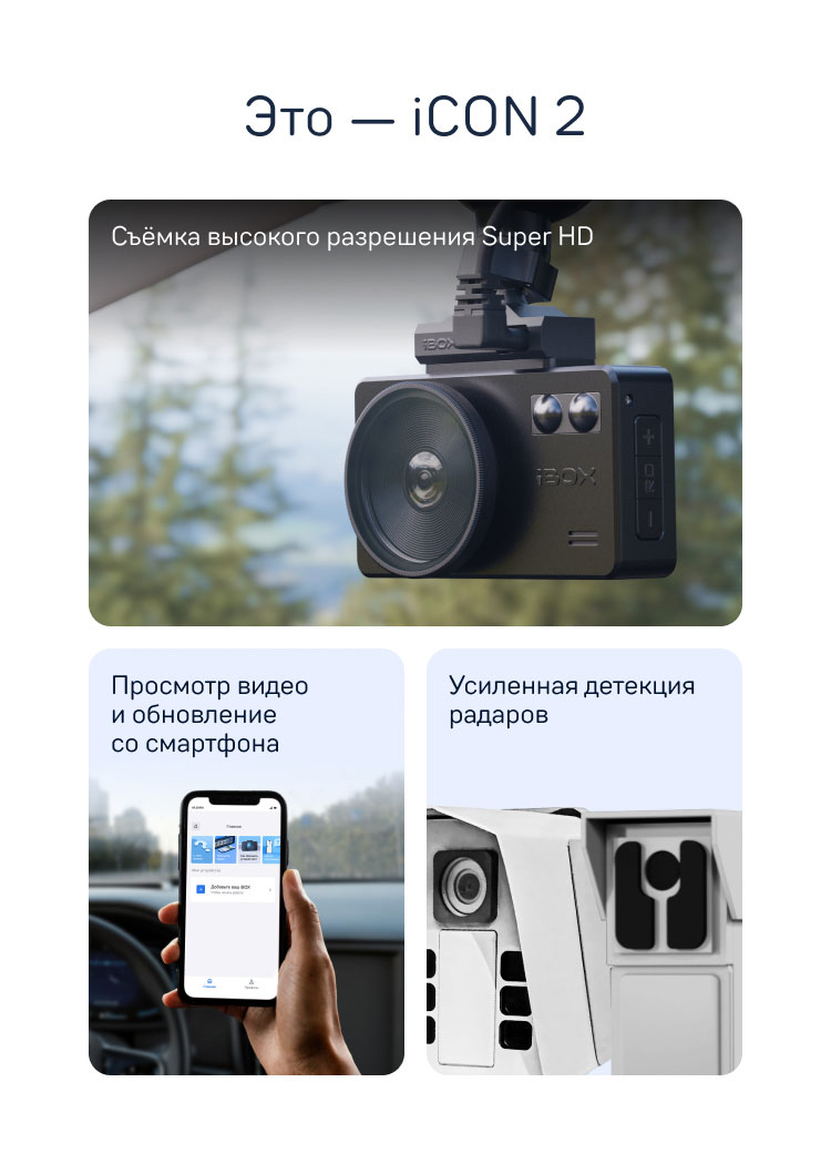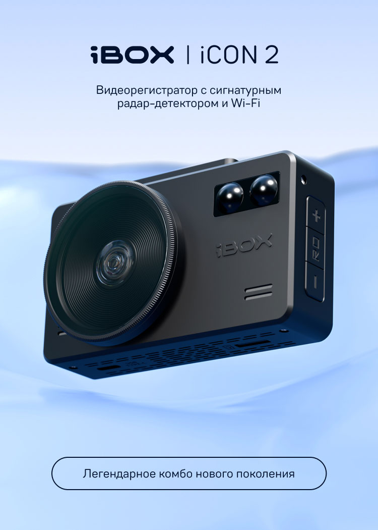iBOX iCON 2 — автомобильный видеорегистратор с радар-детектором и подключением к смартфону через Wi-Fi.
