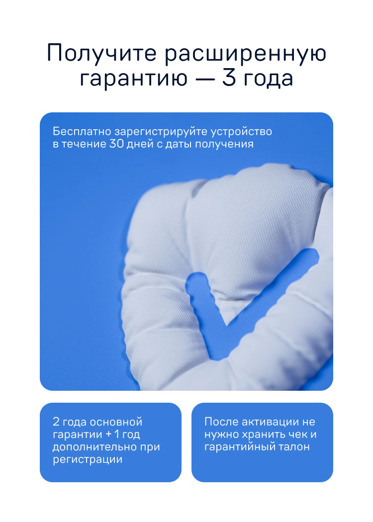Расширенная гарантия 3 года, включает в себя 1 год цифровой гарантии при регистрации на сайте