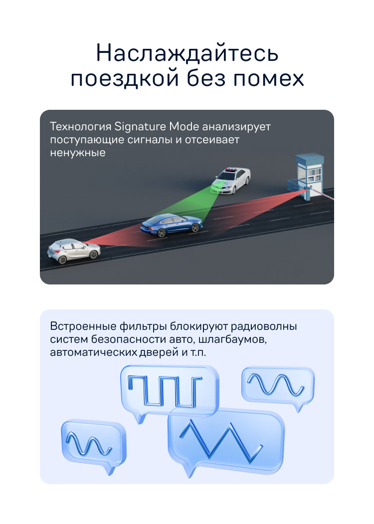 Устройство распознает датчики активной системы безопасности автомобиля и блокирует оповещениеSignature mode