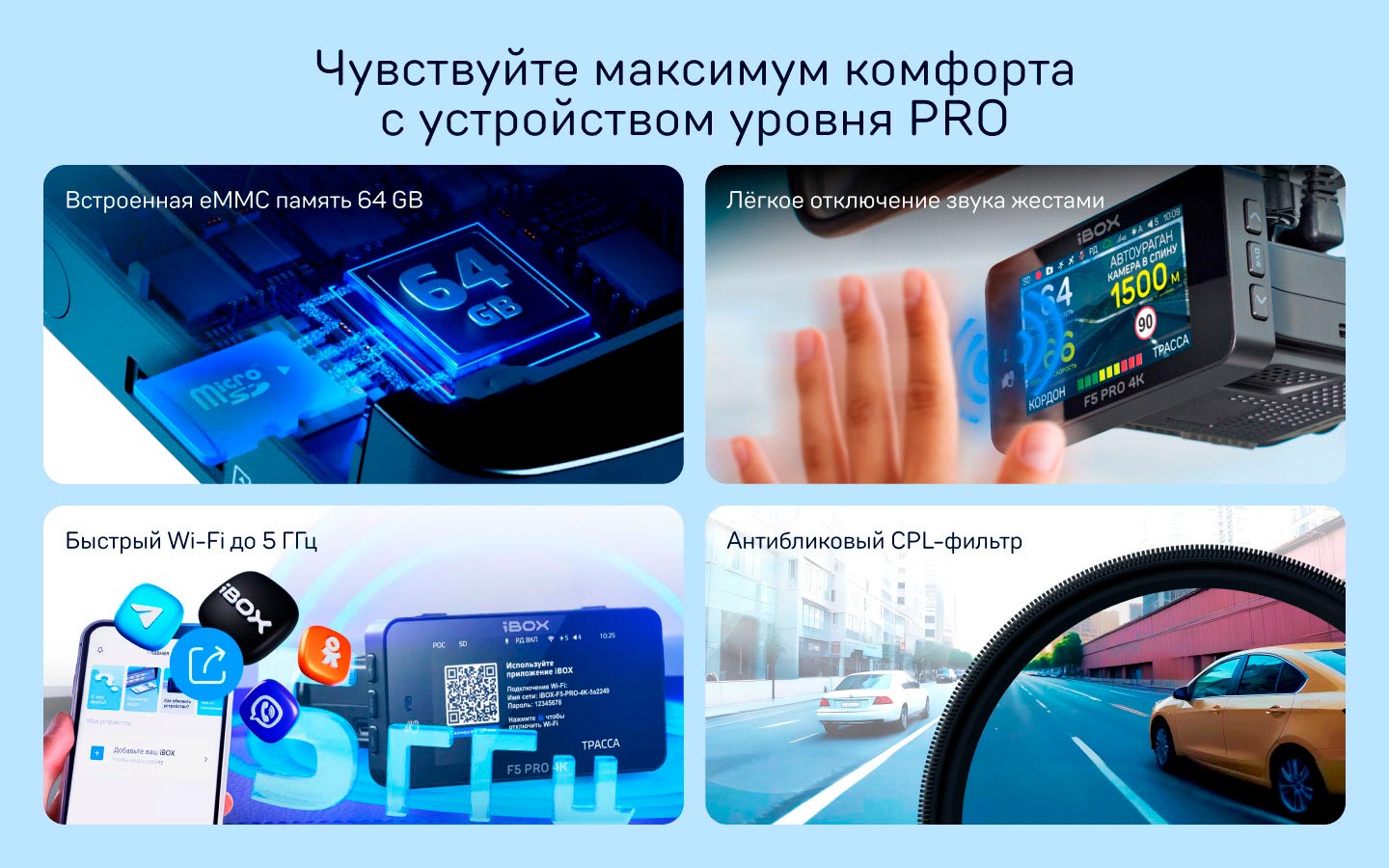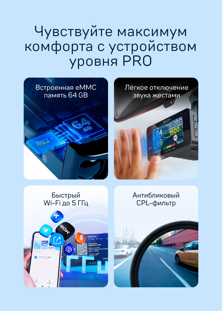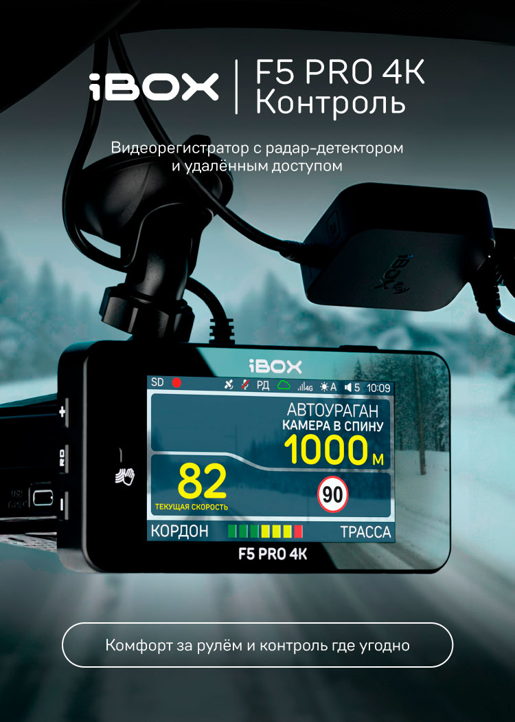 iBOX F5 PRO 4K — автомобильный видеорегистратор с радар-детектором и удалённым доступом.