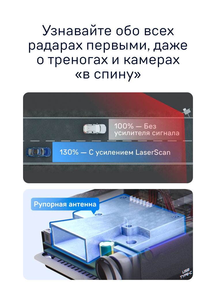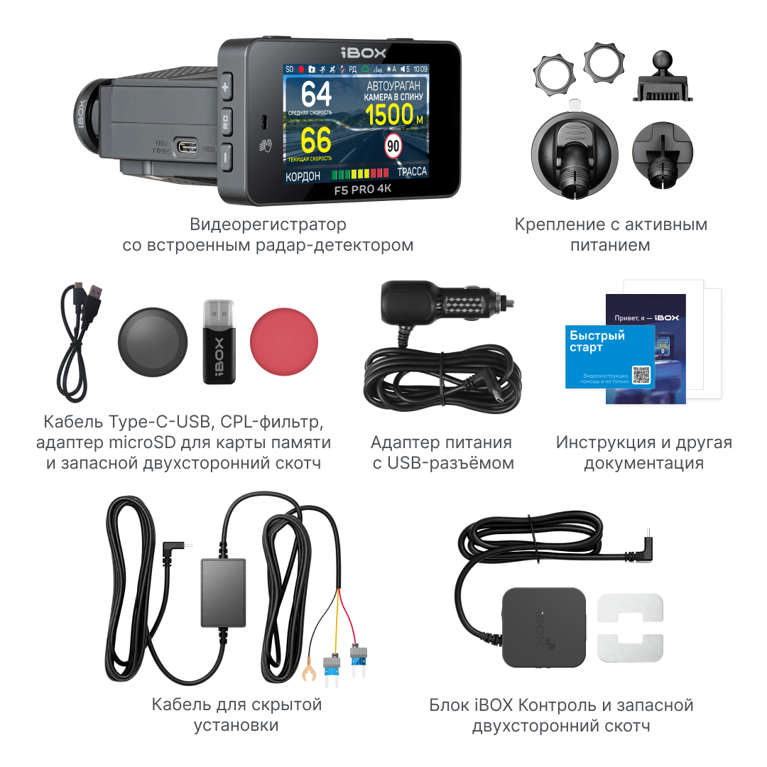Видеорегистратор с радар-детектором iBOX F5 PRO 4K LaserScan WiFi Signature Dual + Адаптер питания Cloud Cord Type-C CC 58 с технологией контроль