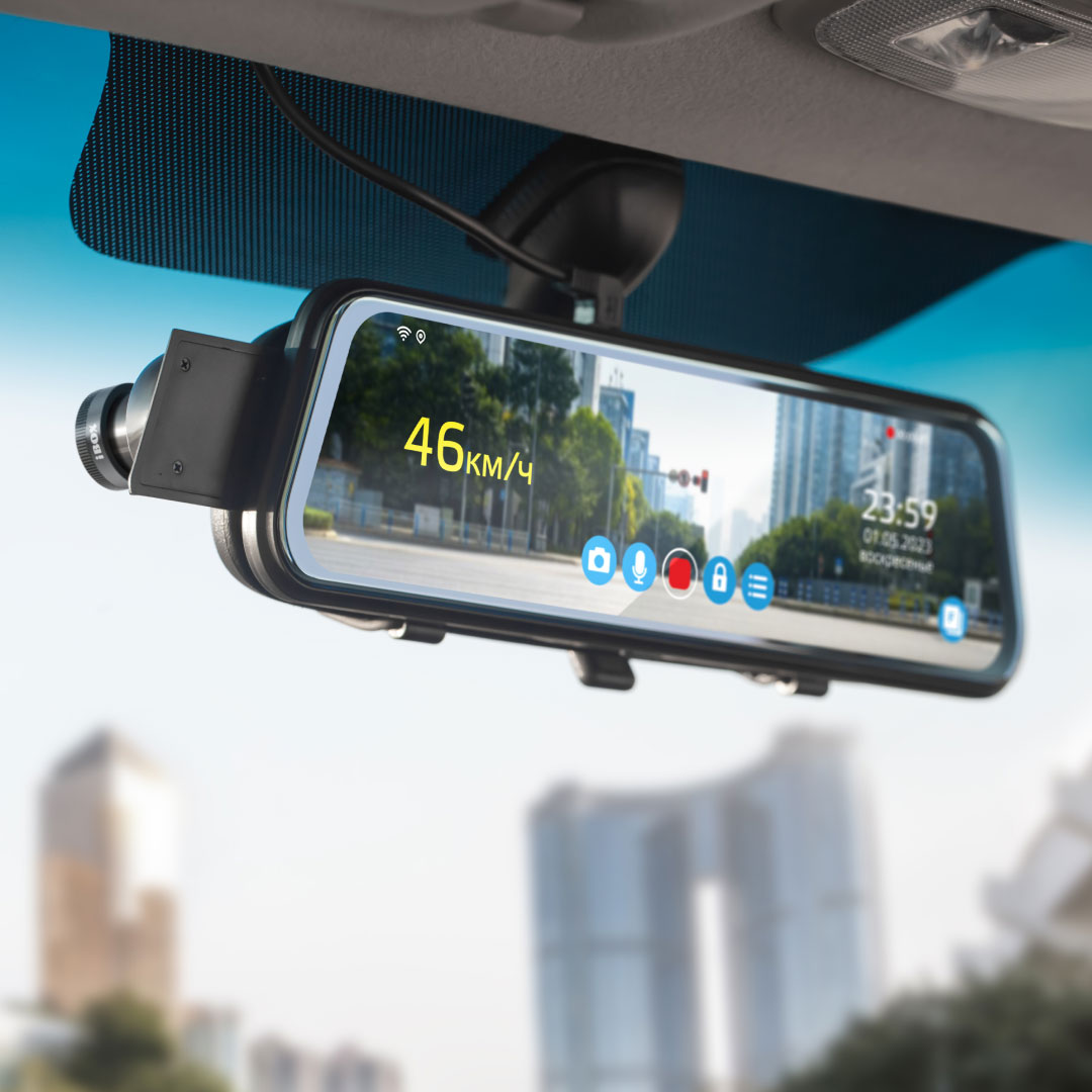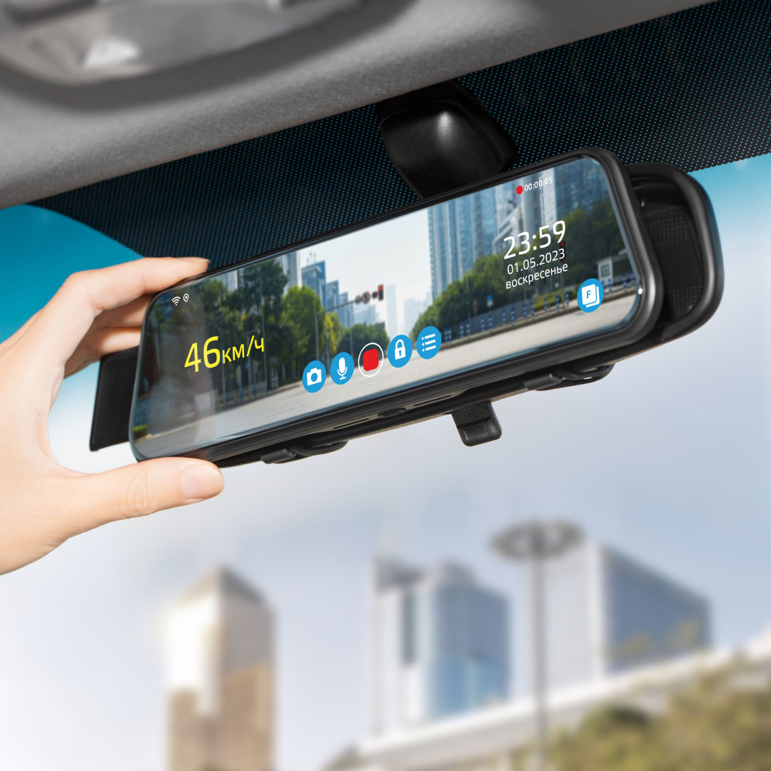Выбирал видеорегистратор в форме зеркала. Большой плюс-наличие камеры заднего вида, что позволяет использовать дисплей как зеркало заднего вида.