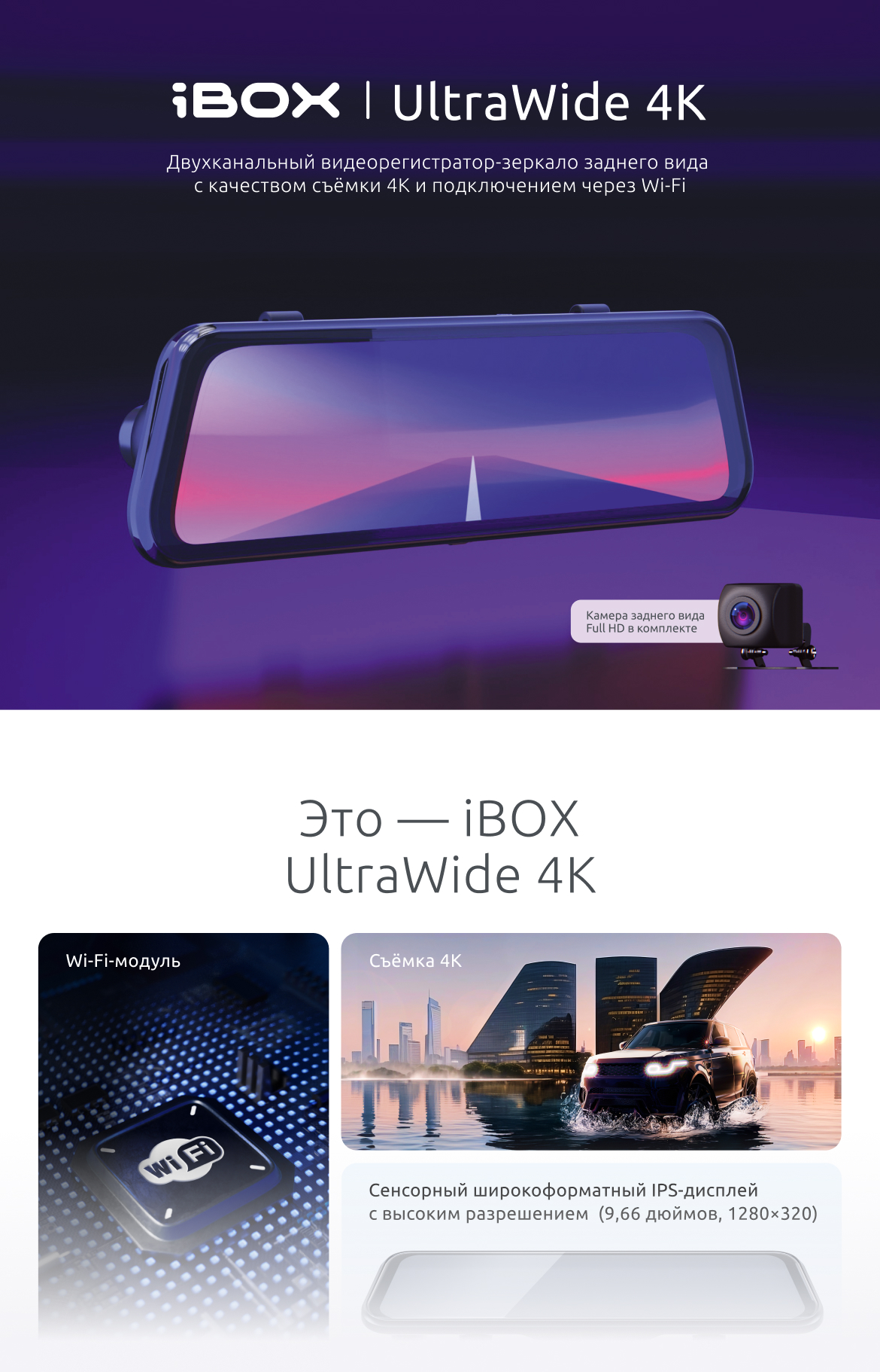 Уценённый видеорегистратор зеркало c камерой заднего вида iBOX UltraWide 4K WiFi GPS Dual