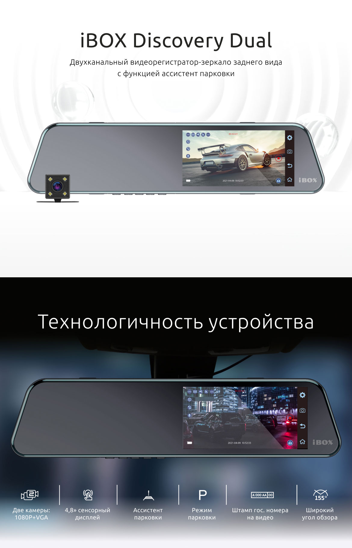 Уценённый видеорегистратор зеркало с камерой заднего вида iBOX Discovery Dual