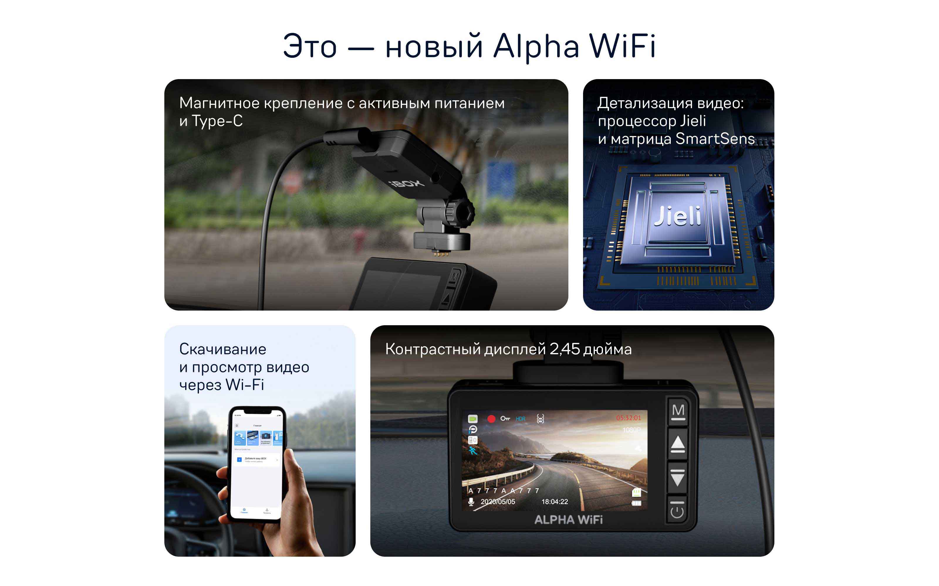 Модуль Wi-Fi позволяет в дистанционном режиме просматривать и управлять записанными видеофайлами. Благодаря встроенному Wi-Fi можно в любой момент загрузить конкретный видеофайл на мобильное устройство или планшет.