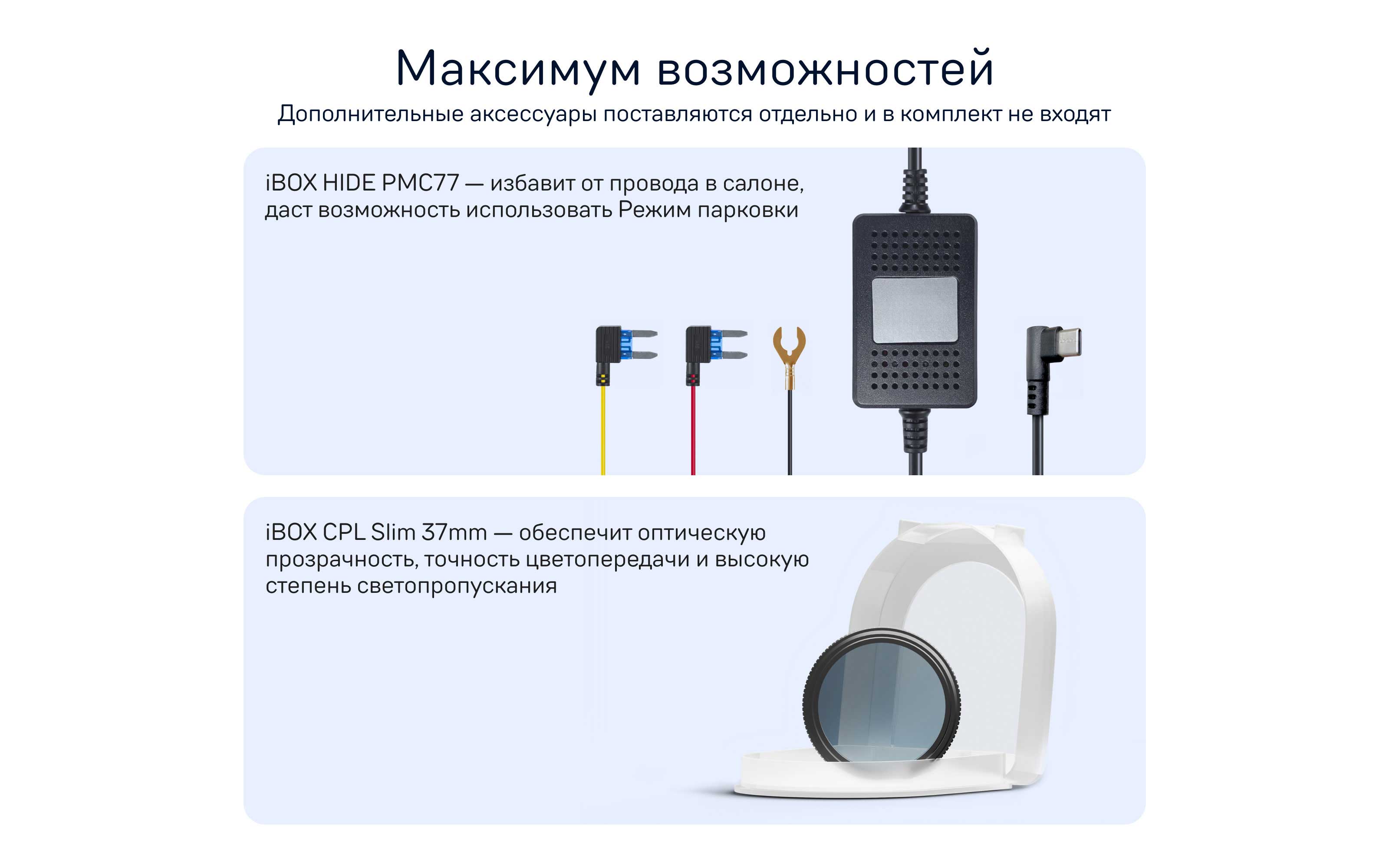 Все устройства получают питание от бортовой сети автомобиля через адаптер питания. Адаптер питания входит в комплект поставки устройства. Адаптер питания может содержать дополнительный разъем: либо USB, либо дополнительное гнездо прикуривателя. Через дополнительный разъем можно подать питание на дополнительное оборудование (смартфон, планшет и т.п.).