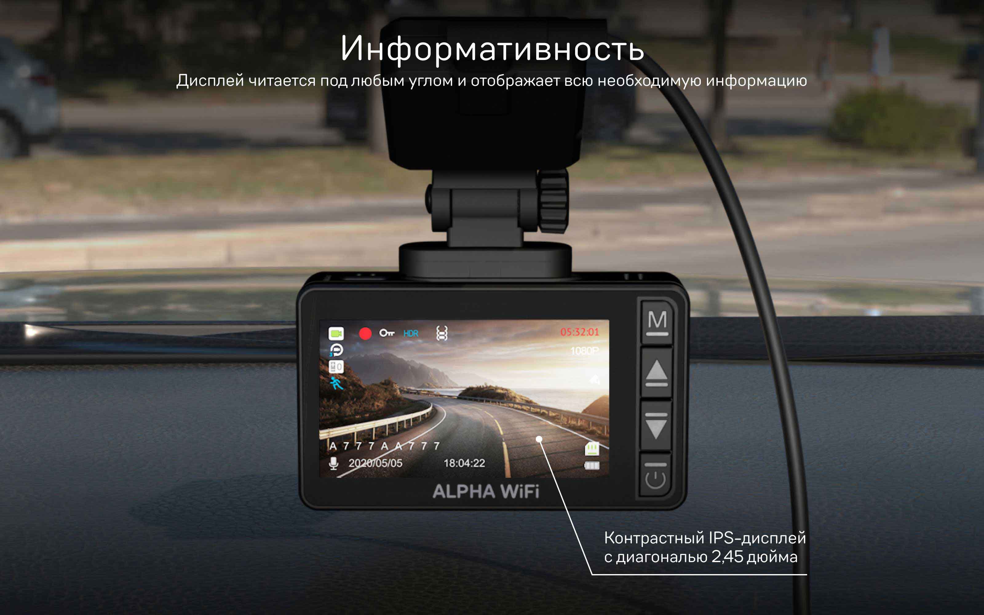 Интегрированный дисплей видеорегистратора служит для вывода изображения с камеры (камер), отображения визуальных оповещений, выполнения настроек через графический интерфейс