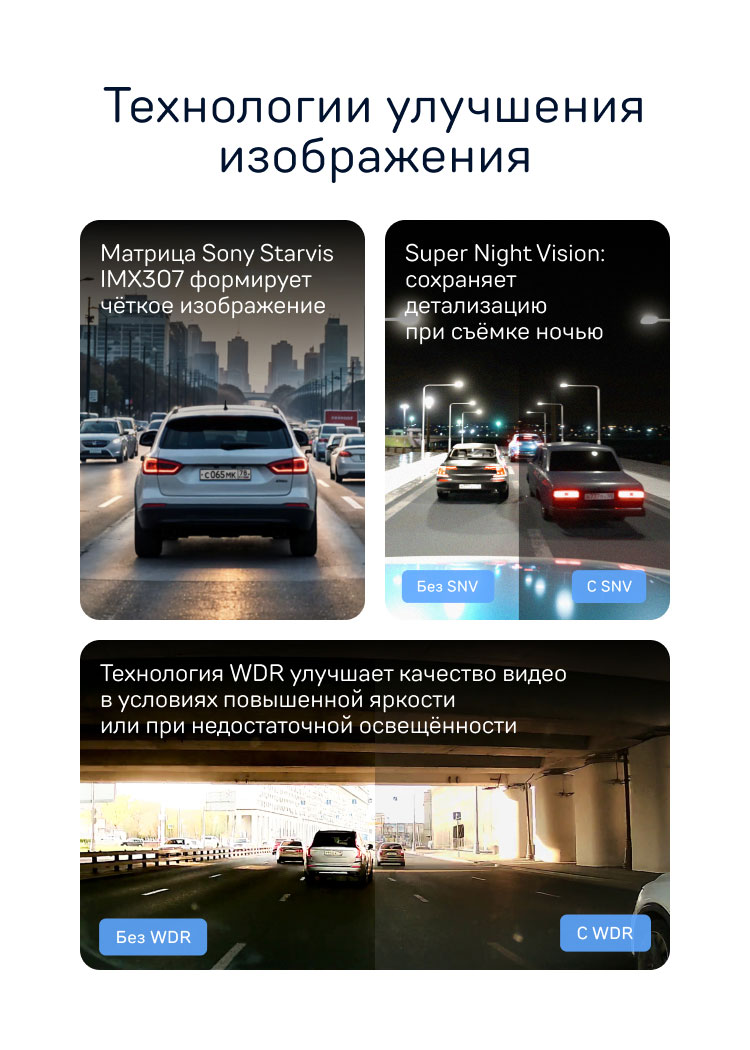 Технология, позволяющая получать высокое качество изображений при любом перепаде уровней освещённости. Наличие в регистраторе этой технологии гарантирует стабильно высокое качество видеозаписи и при выезде из тоннеля, и въезде в него, и даже при попадании в объектив камеры прямых солнечных лучей.