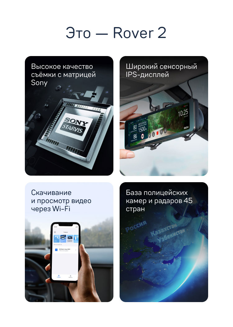 iBOX Rover 2 — автомобильный видеорегистратор-зеркало с сенсорным управлением, базой полицейских камер и Wi-Fi.