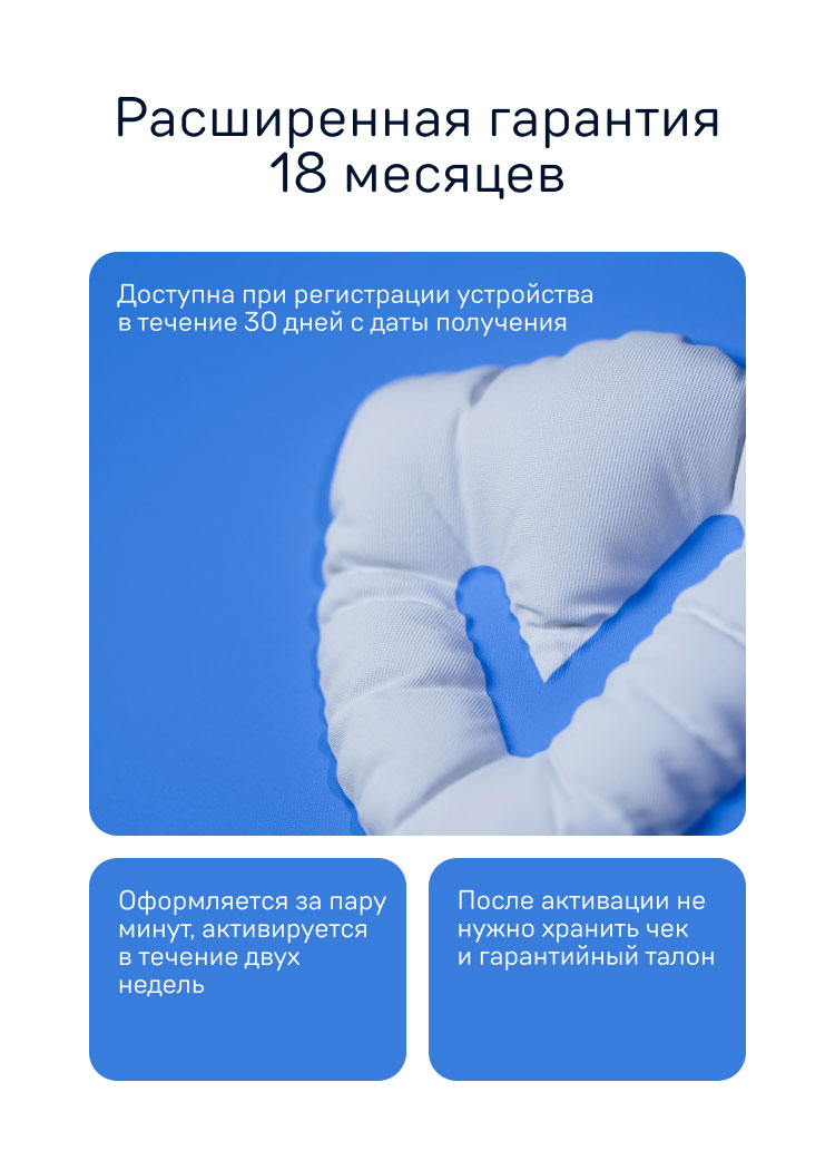 Расширенная гарантия 18 месяцев, включает в себя 6 месяцев цифровой гарантии при регистрации на сайте